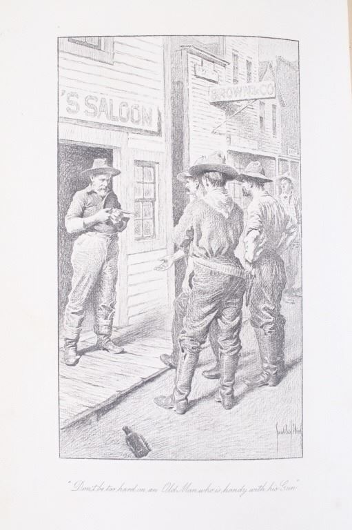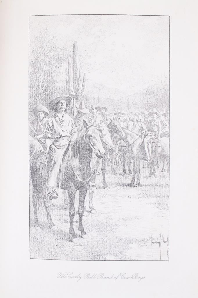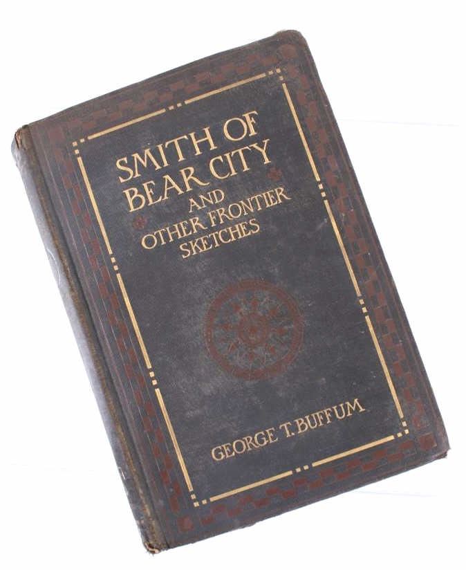 Available in this lot we have a hardcover first edition of Smith of Bear City and Other Frontier Sketches by George T. Buffum. The piece was published by The Grafton Press in 1906. The book is a collection of sixteen stories and tales about life on the western frontier. It contains stories such as The death of Curly Bill, The cook from Texas, Gentle Annie, and others. The piece shows half a dozen illustrations with a gilt gold cover reading "Smith of Bear city and Other Frontier sketches George T. Buffum". The book shows good condition overall with some wear on the spine and light wear on the pages. The piece measures 8 1/2" tall by 6" wide and 1" thick.