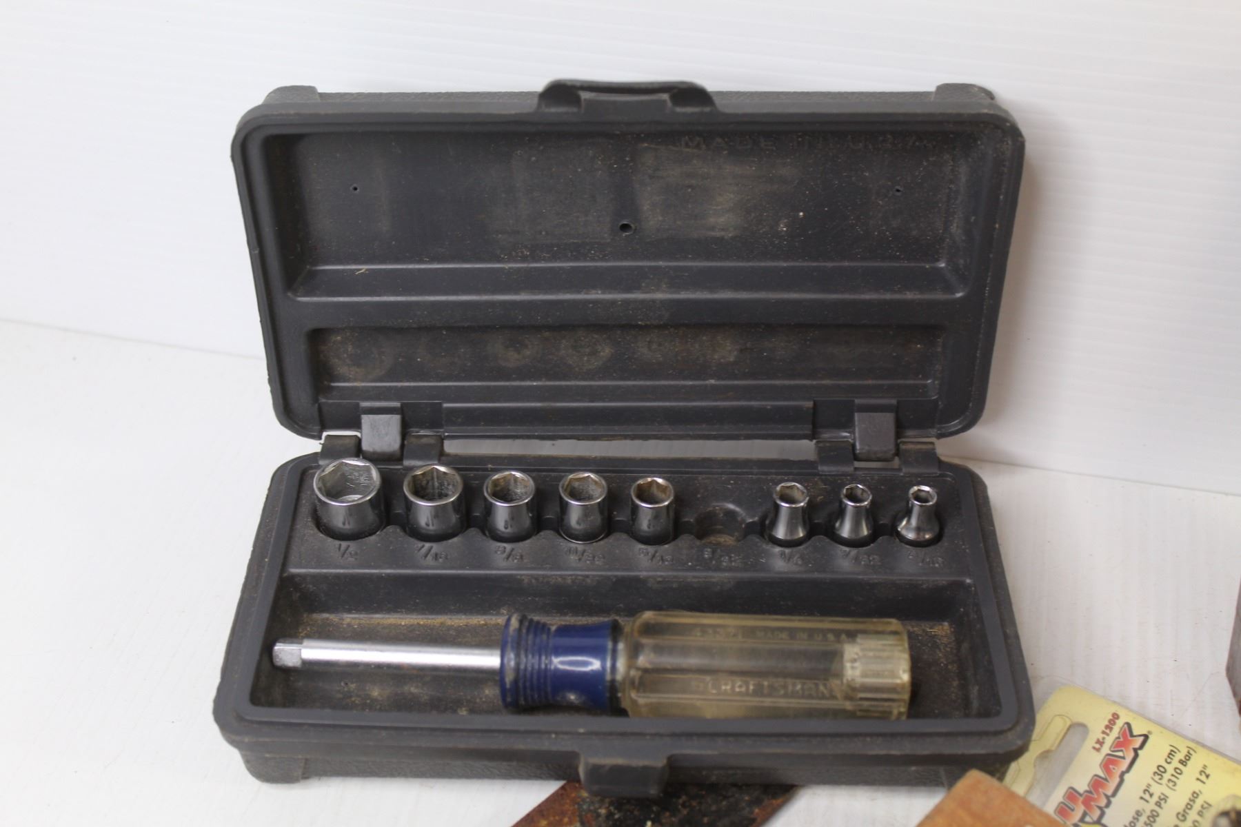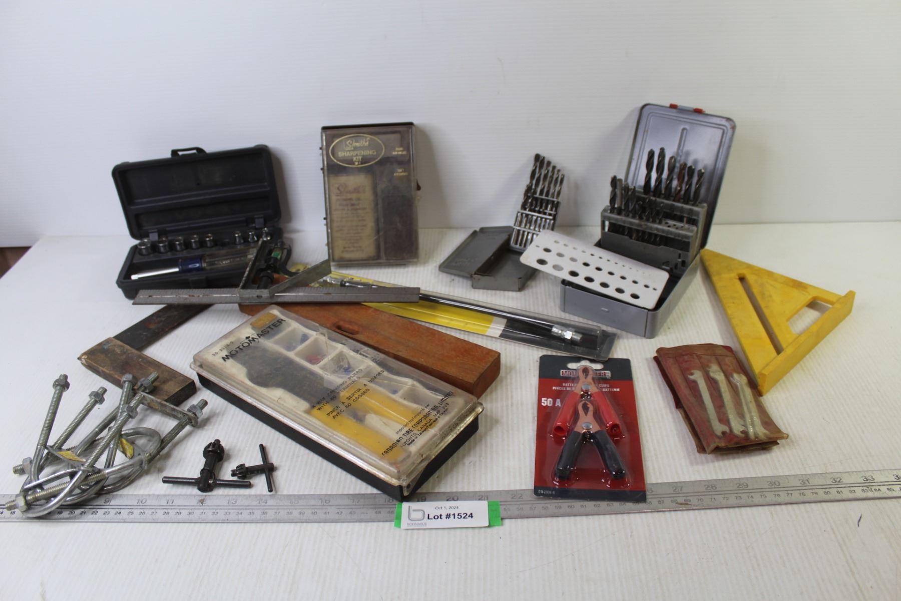 Smith's Sharpening Kit - Drill Bits in Case - Motormaster Crimping Pliers & Terminals - Battery Clips - Small Wrenches - Squares - Misc. Items