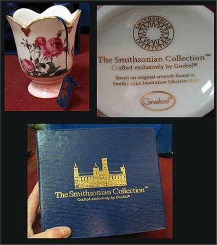 Smithsonian Collection tea light by Goebel in original box. From the Rose Collection, tea light stands 3 1/2" tall