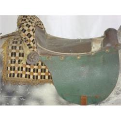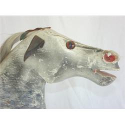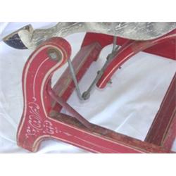 Smoke painted platform rocking horse. Measures 32" tall and 39" long. Scratches are visible to paint and some minor repairs.