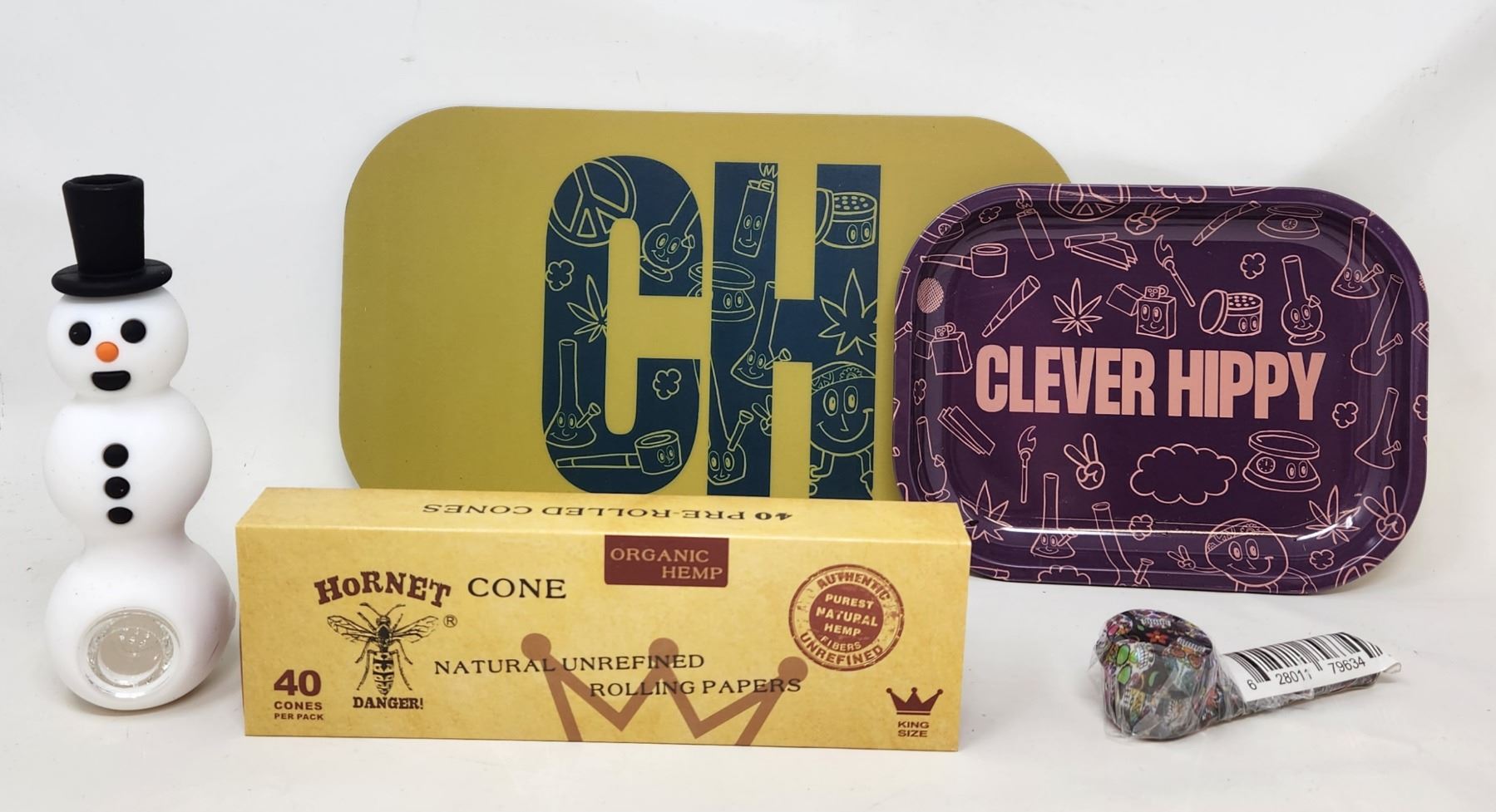 Snowman Pipe/Rolling Mat and tray/Hornet Hemp rolling papers/small pipe