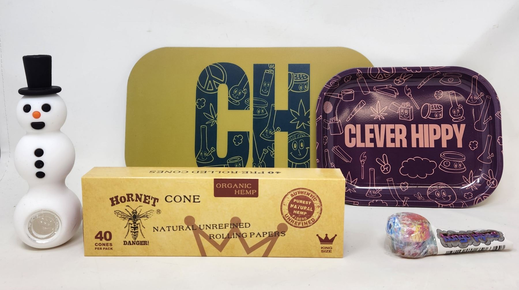 Snowman Pipe/Rolling Mat and tray/Hornet Hemp rolling papers/small pipe