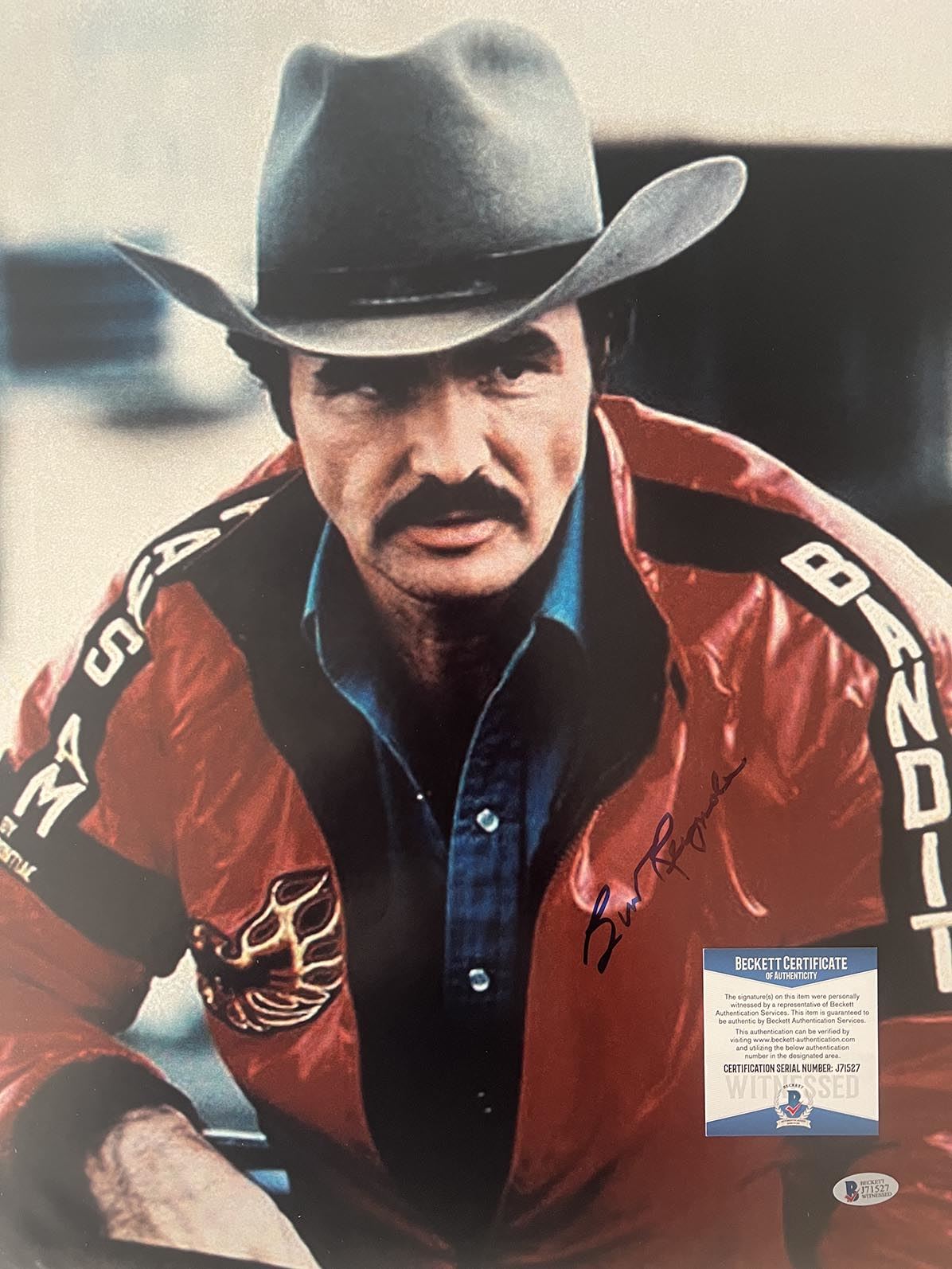 Smokey And The Bandit Burt Reynolds signed photo. Beckett authenticated. 16x20 inches