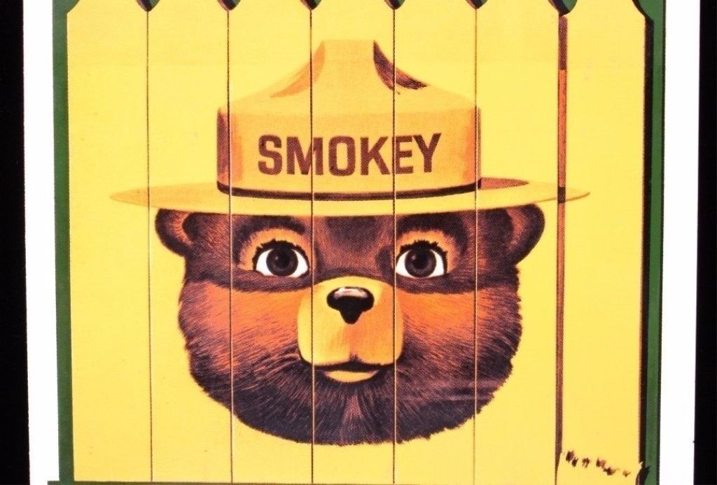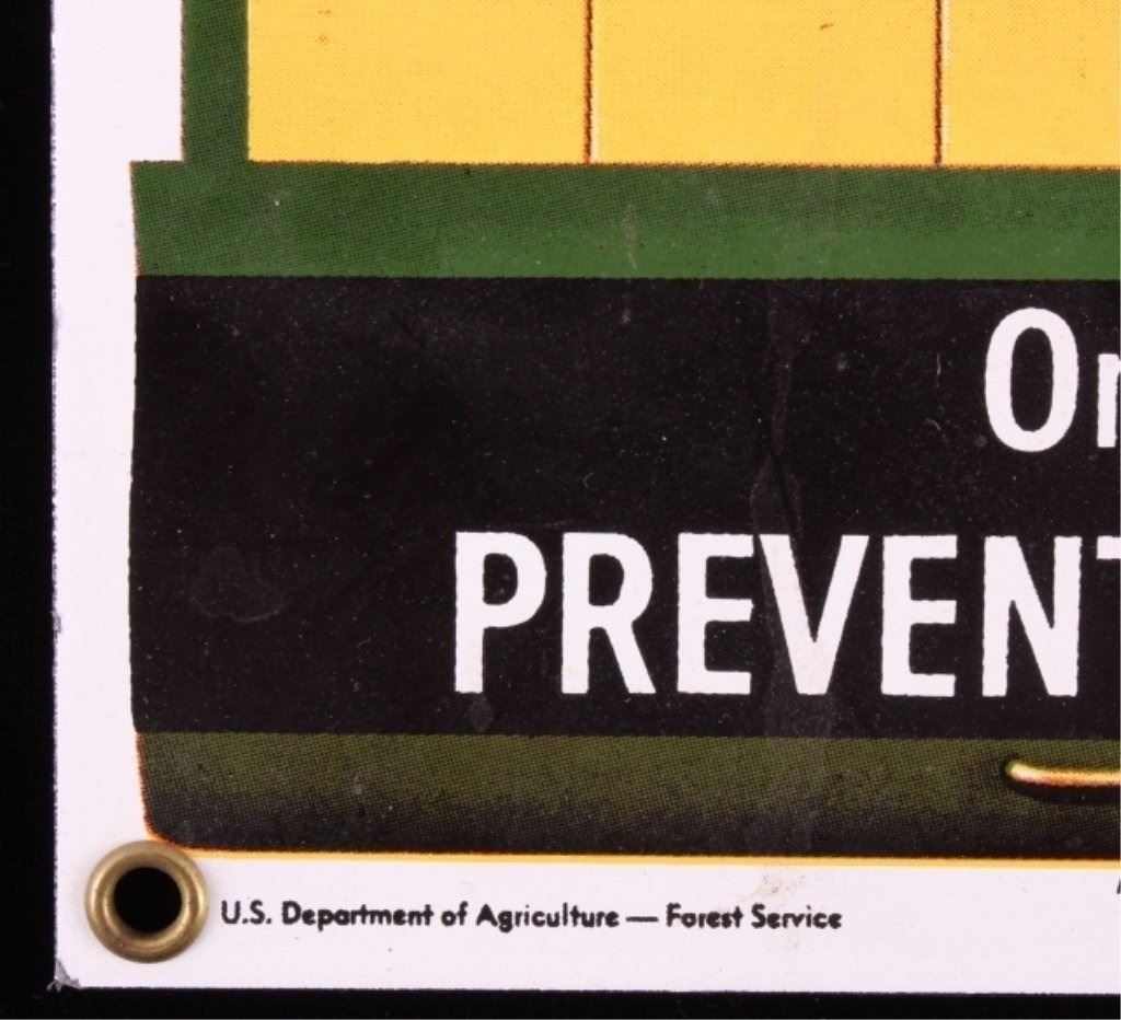This is a porcelain enamel sign showing Smokey Bear. Smokey Bear was adopted by the U.S. Forest Service back in the 1940's as part of their campaign to prevent forest fires. This sign shows a book of matches with Smokey's face. The sign is in very good, near mint condition. It measures 11" x 7.75".
