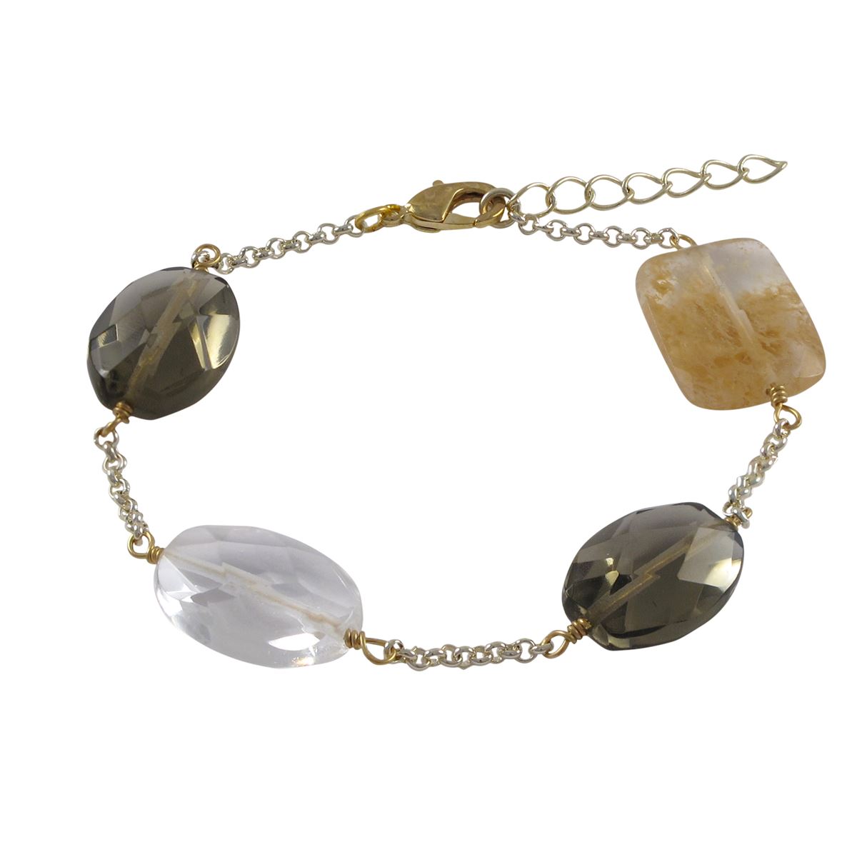 Smokey-Citrine Rutilated (Rutile) Semi Precious Faceted Chunky Stones On Gold Plated Sterling Silver Chain Bracelet, 7.5 1