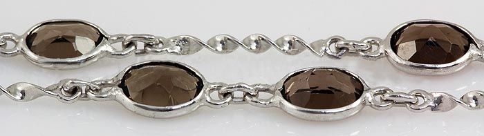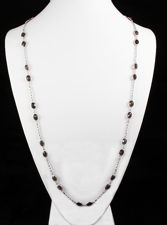 Smokey Quartz 40.00CT SilverSwivel LinkChain Necklace 1 **|**|** 31in. Long Natural Smokey Quartz Gemstone Set in Bezel Swivel Link Chain Silver Necklace; 32pcs 8x6mm ; MSRP: $2800