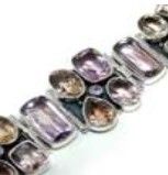 Silver & Smokey Quartz & Pink Amethyst Bracelet