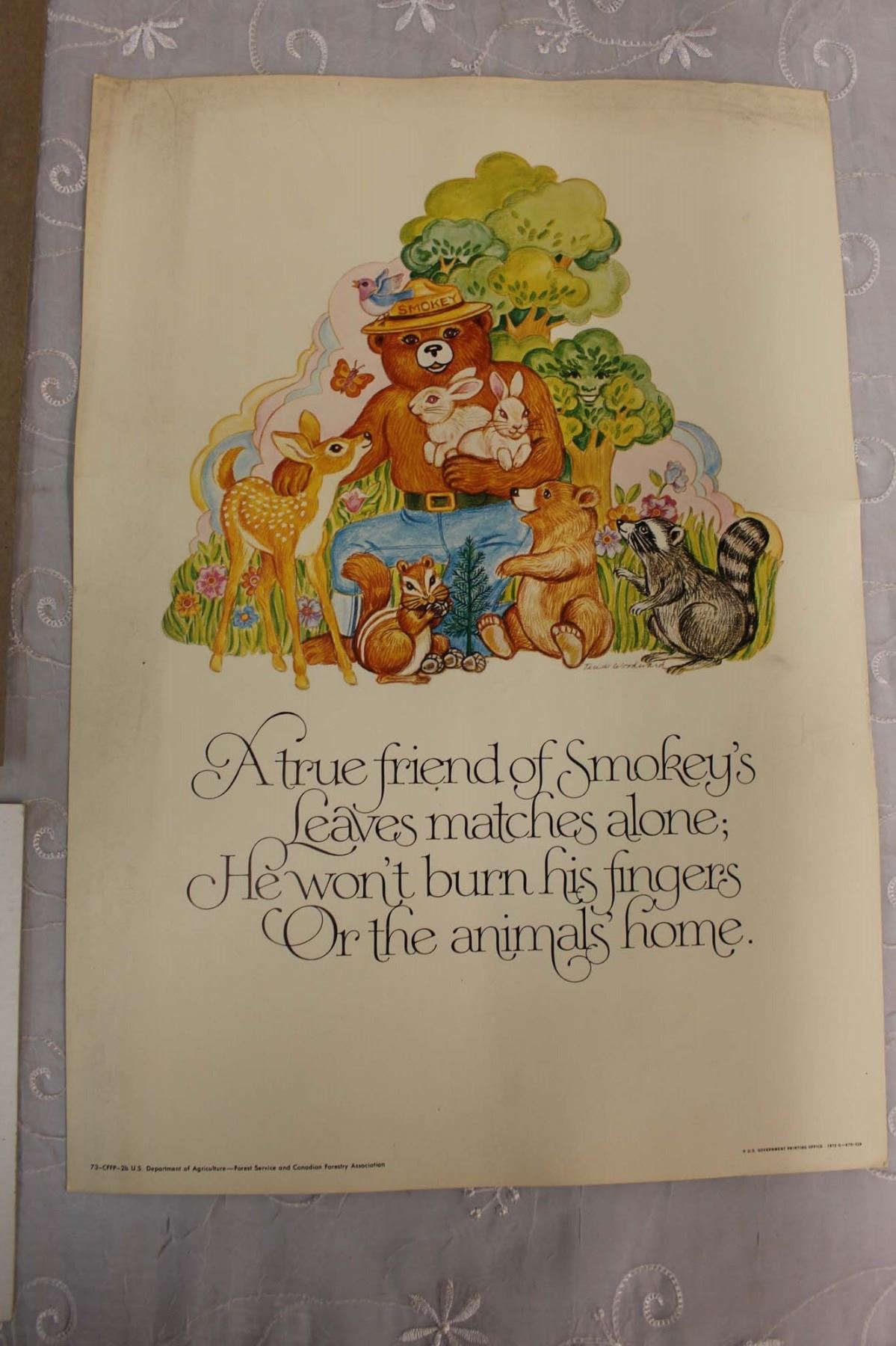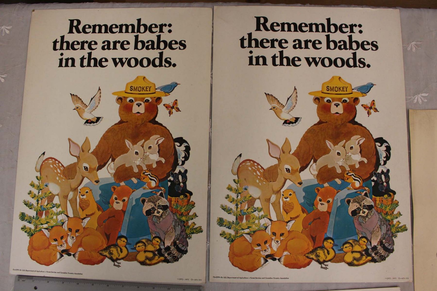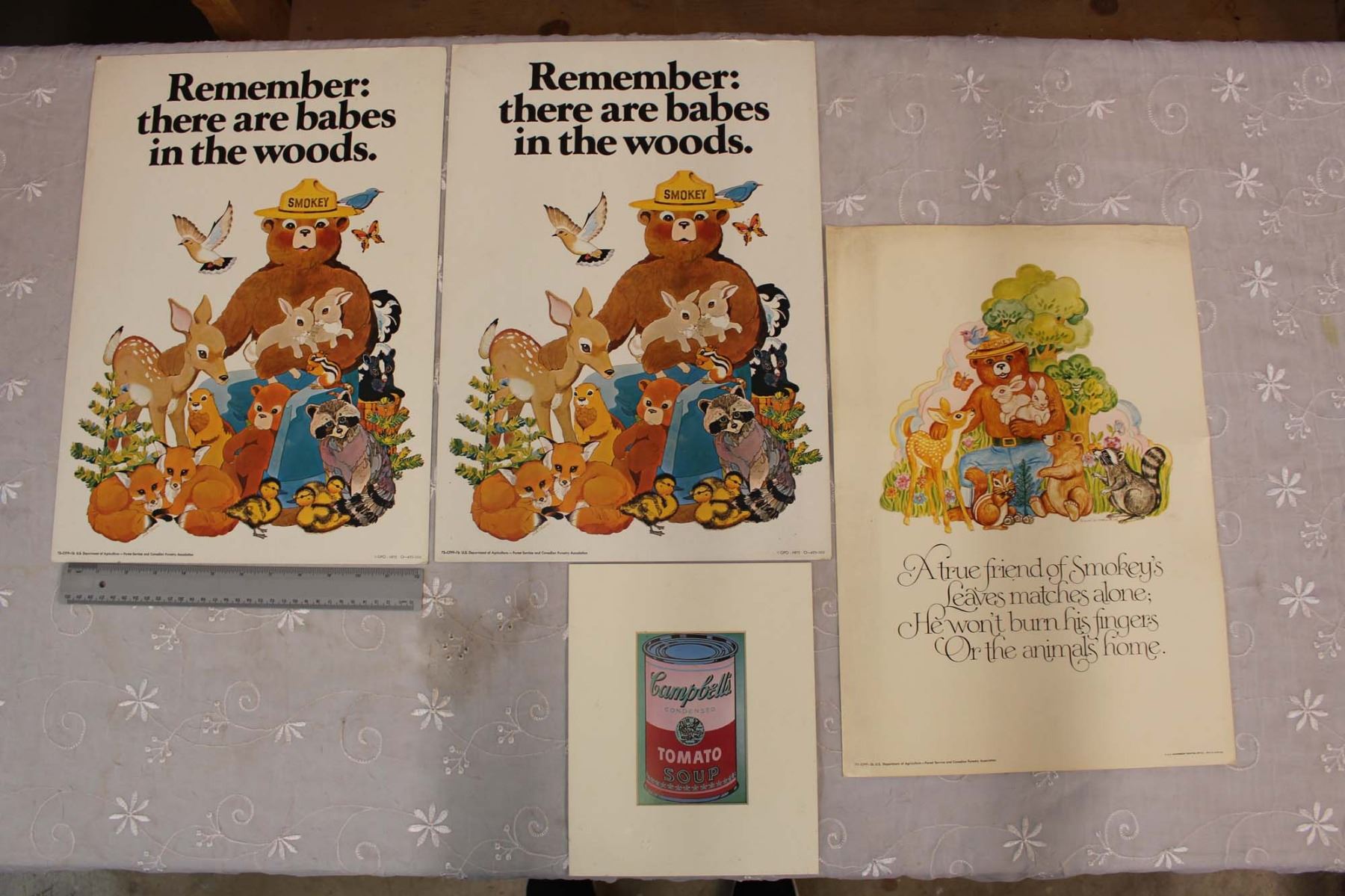 Smokey The Bear Cardboard Signs (3) & A Cardboard Campbell's Soup Sign
