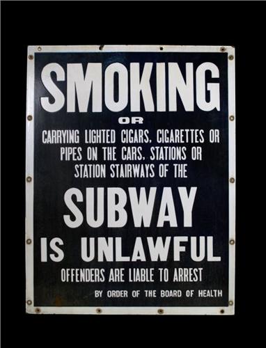 "Smoking in Subway Unlawful" sign 21 x 27 "