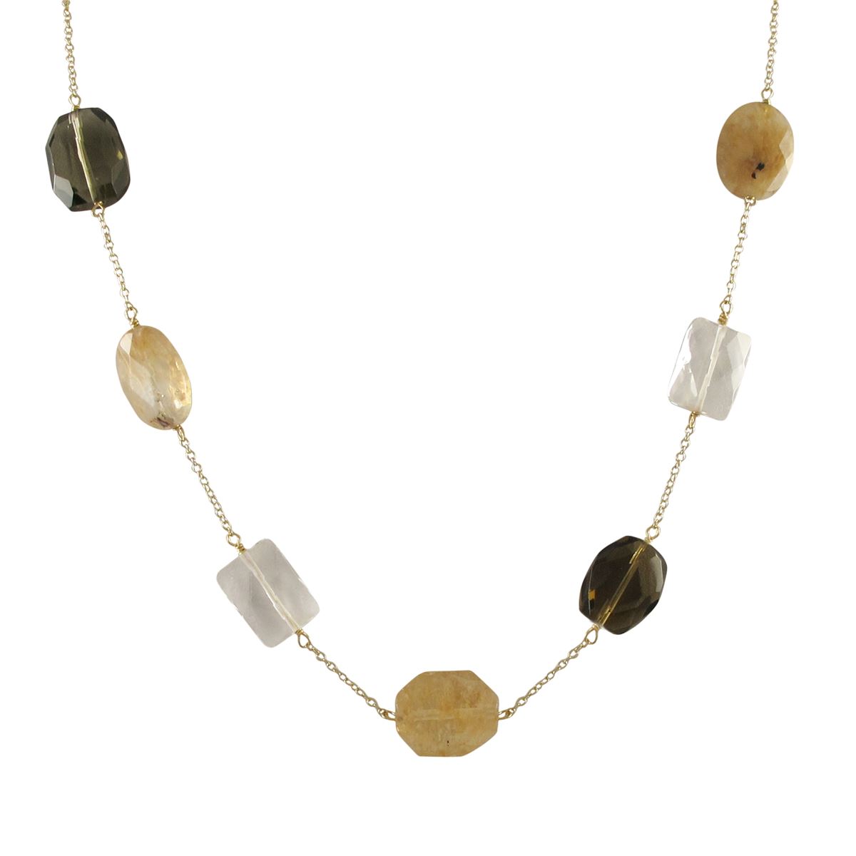 Smoky And Citrine Rutilated Combination Semi Precious Faceted Stones On Gold Plated Sterling Silver Chain, 18" 2"