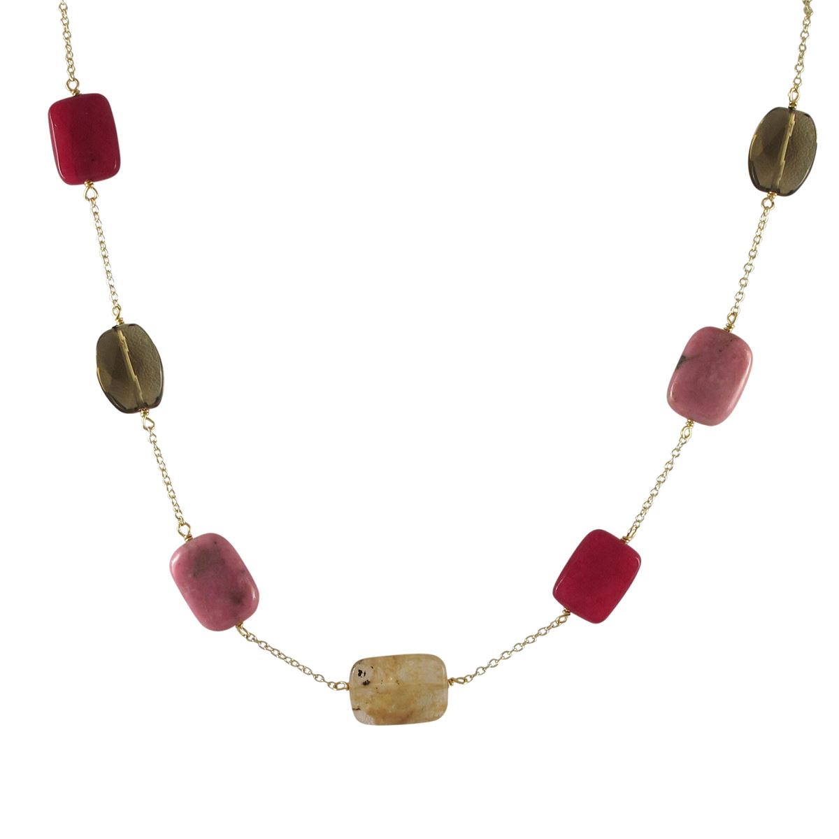 Smoky And Rhodonite(Pink) Combination Semi Precious Faceted Stones On Gold Plated Brass Chain, 18" 2"