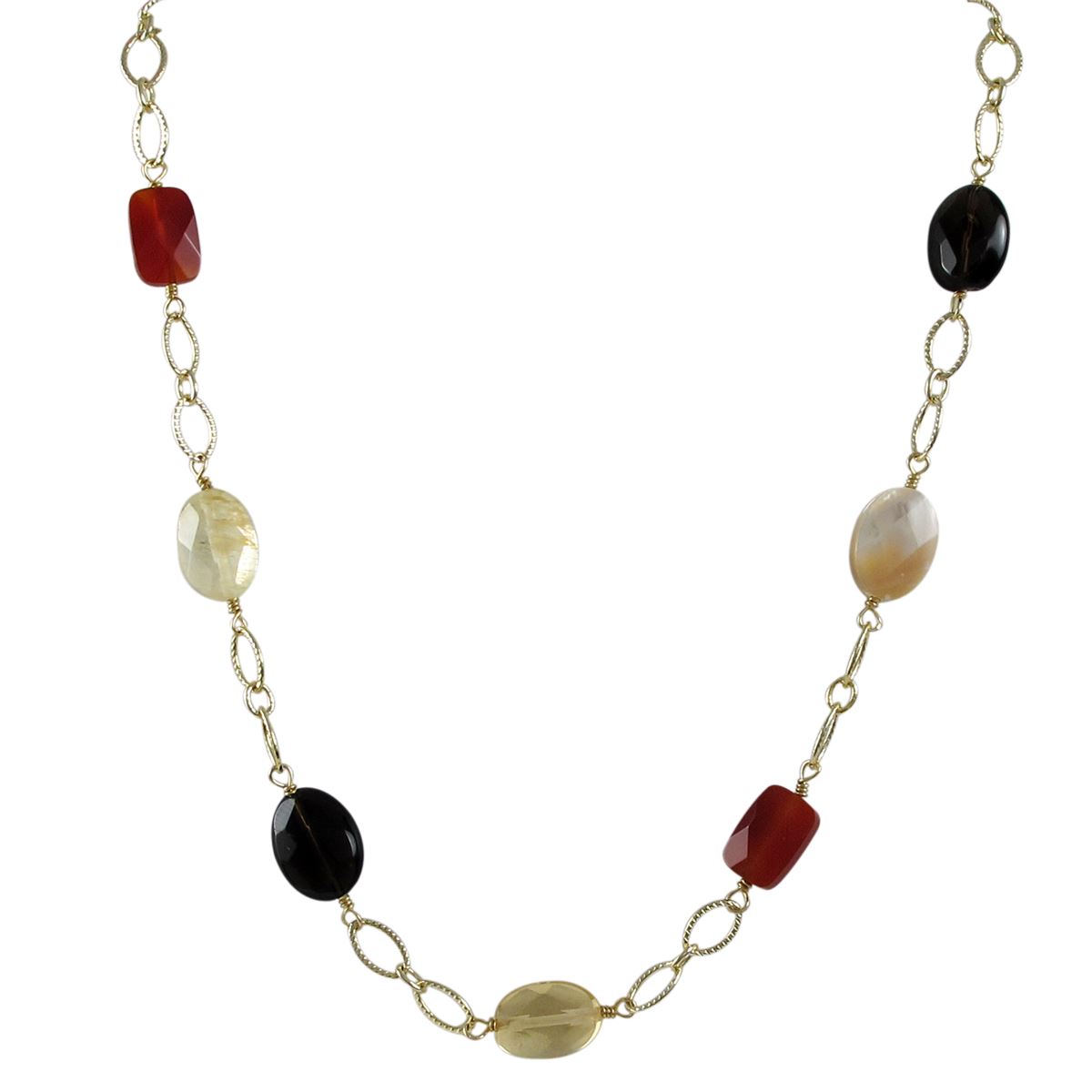 Smoky Combination Of Semi Precious Stones On Gold Tone Brass Chain- 16" 3"