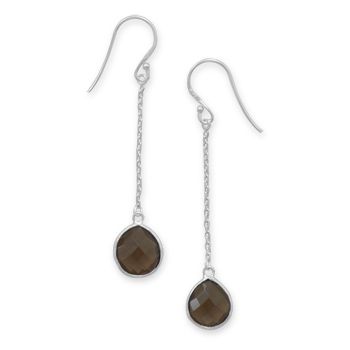 Sterling silver chain drop french wire earrings with pear shape smoky quartz drop. The smoky quartz is approximately 10mm x 11mm. The earrings hang approximately 64mm. .925 Sterling Silver