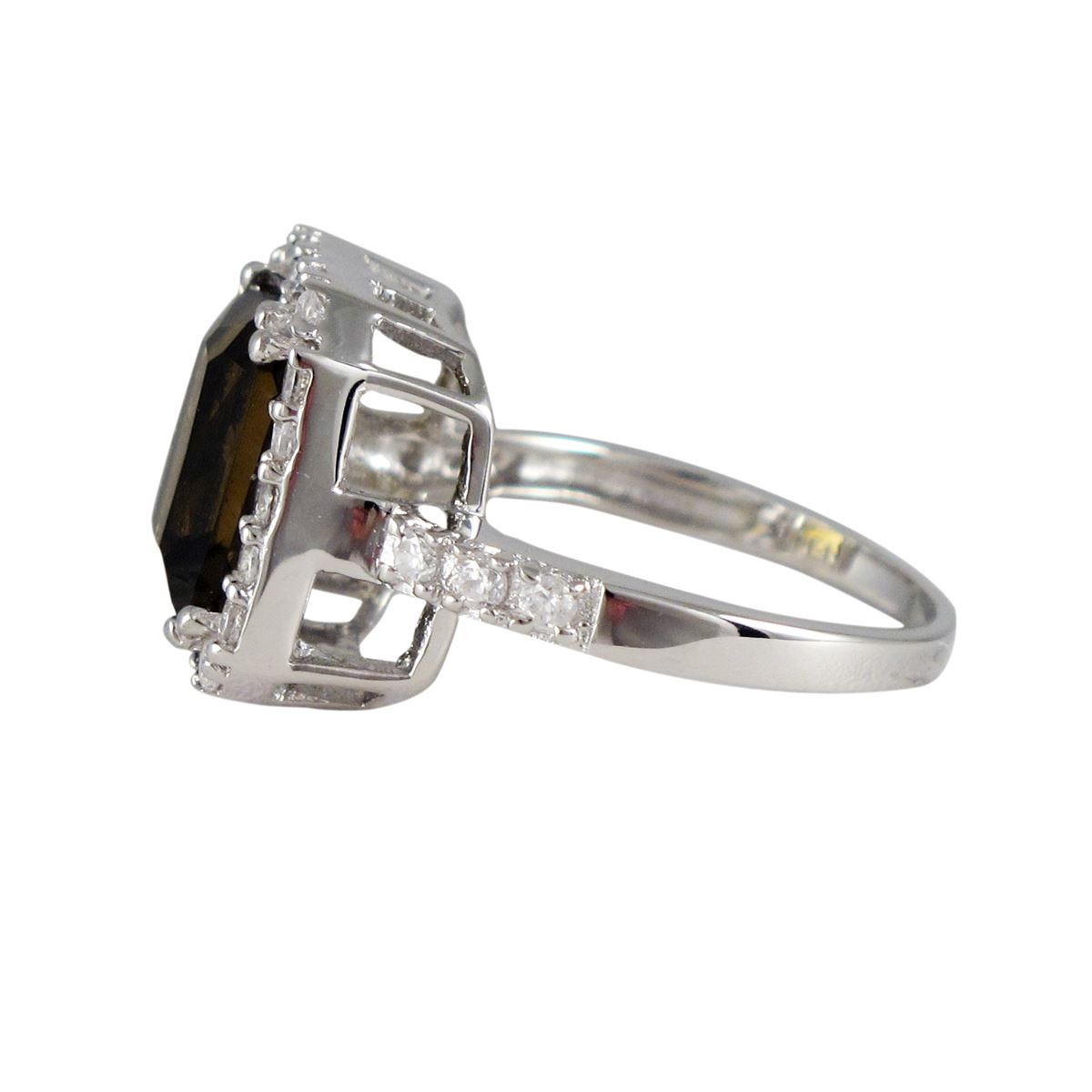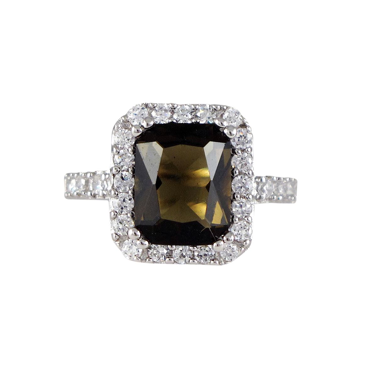 Smoky Square CZ, Surrounded With White Czs, Sterling Silver Ring Size 5
