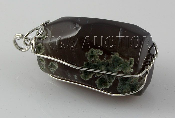 Smooth 161.15ctw Uncut Amethyst Silver Pendant **|**|** Tumbled Smooth Stone Amethyst Wrapped with Sterling Silver Wire size: 37.05x24.63mm; color: Purple; stone: Uncut Gemstone ; MSRP: $300