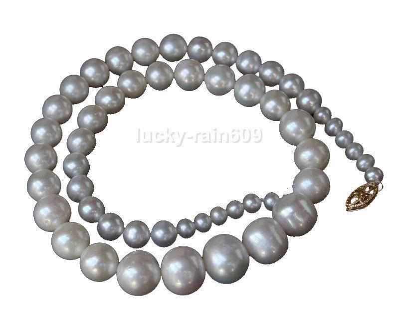 Smooth Surface Luster 5-13mm Graduated Round White Pearls Necklace 14k