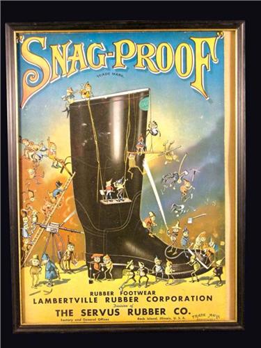 Snag Proof Rubbers Sign, Lambertville Rubber Corp. The Servus Rubber Company. Great graphics, excellent condition. 11 X 16 inches.