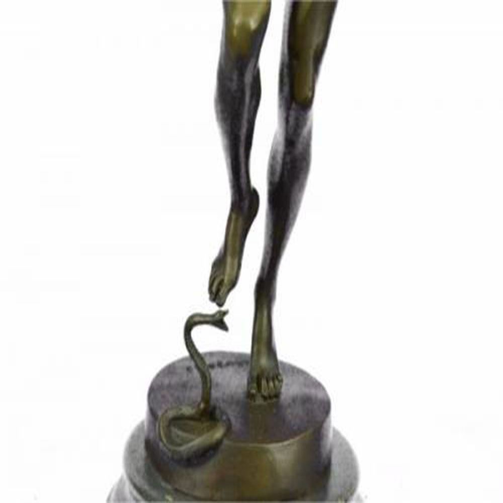The Snake Charmer would become as confirmed by the many reductions that were made of it, like this one. The Sculpture reflects the wideranging debate within academic art that revolved around the dominance of the classical ideal. It introduces art to a new field, namely science and thus to the idea, then it opens new horizons by giving new subjects and reveals beauty in all its aspects and in all climates. Bronze Dimensions with Marble Base: Height 17 X Width 6 inches. Weight: 10 LBS.