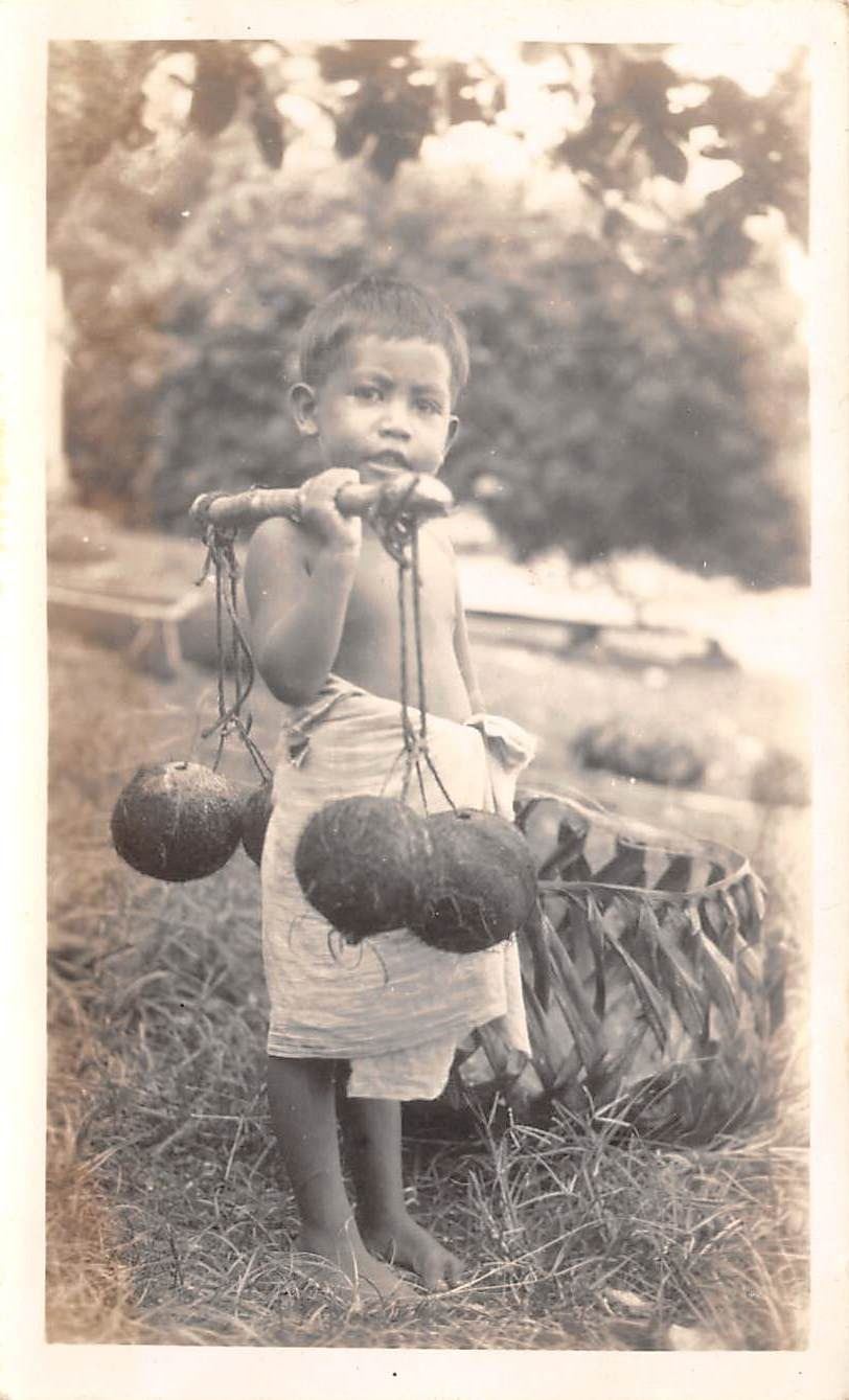 Snap Shot Real Photo Native Boy Carrying Coconut