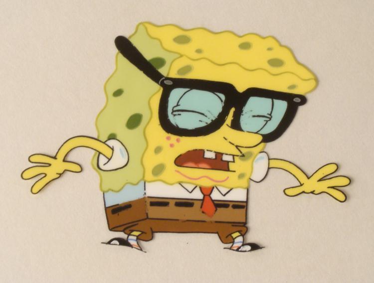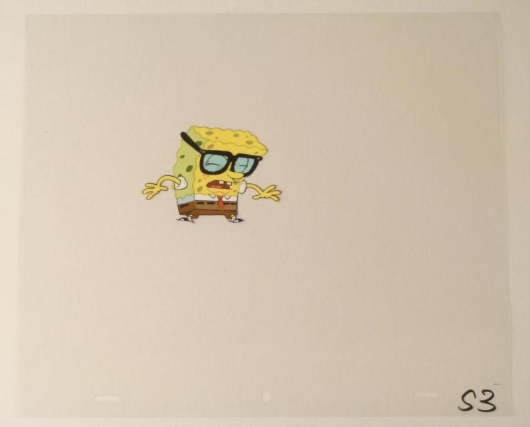 This original animation cel is from the Nickelodeon TV show SpongeBob Squarepants. The story takes place under the deep blue sea in Bikini Bottom, where SpongeBob resides. SpongeBob, who is a yellow, porous sponge, is your typical happy-go-lucky character, as he is always cheerful and enjoys making people laugh. Patrick Star, SpongeBob's neighbor who is a starfish, is your average children's show idiot, as he boasts knowing nothing and is often getting himself into ridiculous situations. Between the homes of these two lies the home of the miserable Squidward, a squid, who is known for being grouchy and playing tricks on SpongeBob and Patrick. Both SpongeBob and Squidward work at the Krusty Krab, a fast food business run by the greedy money-loving Mr. Krabs, a crab, the arch rival of the evil, possibly misunderstood, Plankton. Another neighbor, Sandy Cheeks, an athletic squirrel who normally wears an astronaut's space suit, was introduced in "Tea at the Treedome." She spends most of her time inventing and experimenting. * SpongeBob appears to be sneezing * Original Production Animated Cel Overall Size of Cel: 10 1/2" x 12 1/2" Very Good Condition This is an original hand-painted cel set-up used in the production of an episode of "SpongeBob SquarePants." Each one-of-a-kind set-up represents a slight change in position of the characters. When individually photographed and projected in rapid succession, the images appear to move. * To create production cels, the original animator's drawing is transferred onto an acetate cel (by hand-inking and/or photo copying). The cel is then hand-painted on the reverse side. * The cel is ready to be matted and framed. The animator's notations are at the bottom of the cel. *