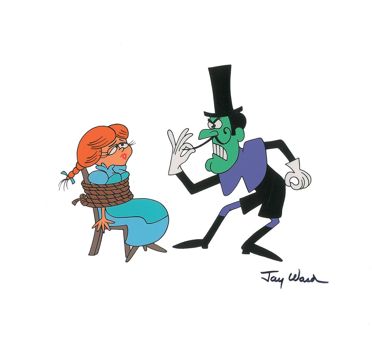 (Jay Ward Productions, Circa 1980s) Original hand-painted publicity cel featuring Snidely Whiplash and Nell from Dudley Do-Right, signed in black felt tip by Jay Ward. Image measures 8.5 x 6.5, with overall dimensions of 12.5 x 10.5. In fine condition.
