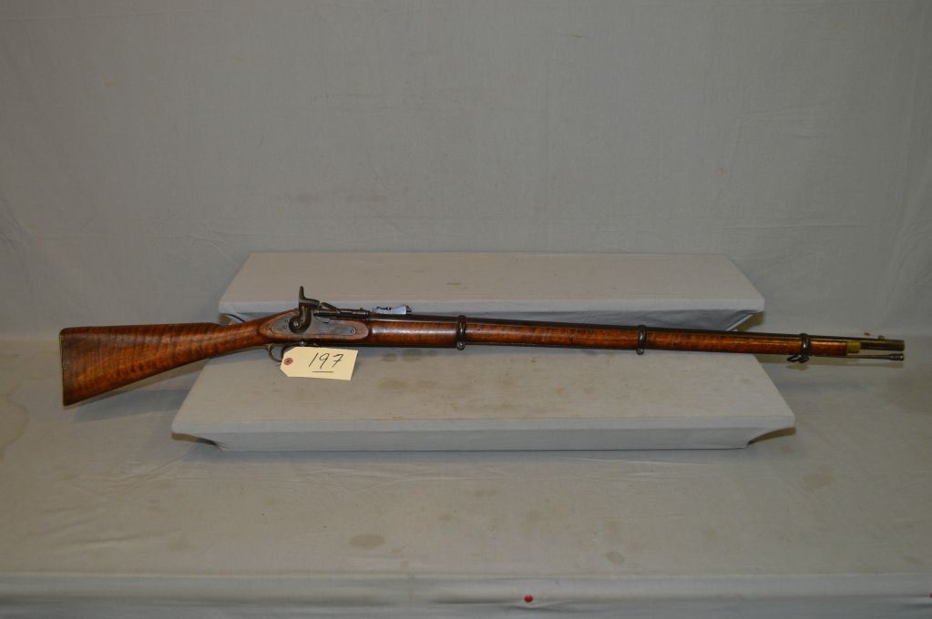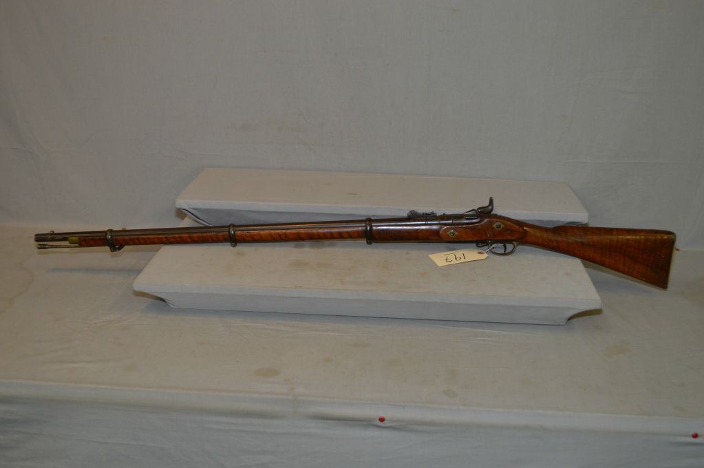 Snider Enfield ( Tower 1870 on lock ) Model Three Band .577 Snider Cal Single Shot Full Wood Military Rifle w/ 36 5/8" [ blued finish turning brown, good wood stamped 15, brass end cap, trigger guard & butt plate, w/sling swivels, cleaning rod ] Ser # Nil ANTIQUE NO PAL REQ