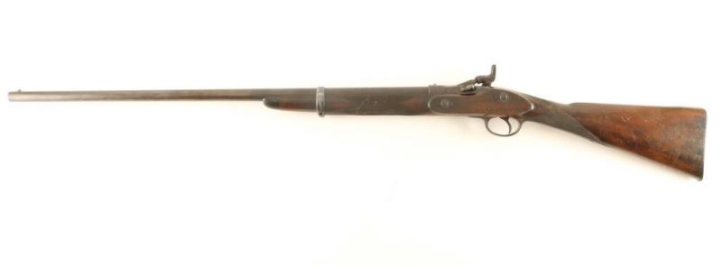 British breech loading single shot shotgun with approximate 16 gauge bore. Manufactured circa 1870. Features a blued finish, 30.5" barrel, post front sight, single barrel band, rounded trigger, iron furniture, cupped hammer face, 1878 dated Newton lock, and checkered walnut straight grip shoulder stock with ebony forend cap & smooth steel buttplate. Rifle exhibits an aged brown patina with bright bluing in the protected areas. Action is mechanically sound, bore is very good with a small amount of minor pitting and the wood stock is good+ with dings and scrapes. Condition is NRA Good ***Antique Firearm*** From The John F Sukey Collection