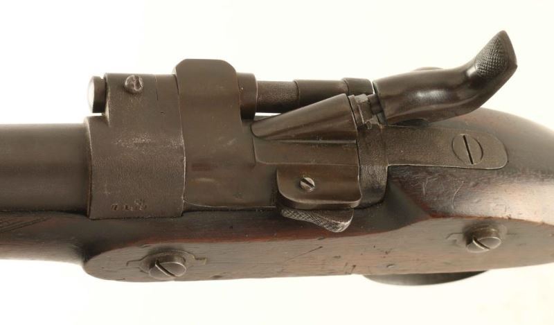 GOOD: Some minor replacement parts; metal smoothly rusted or lightly pitted in places, cleaned or re-blued; principal letters, numerals and design on metal legible; wood refinished, scratched bruised or minor cracks repaired; in good working order.