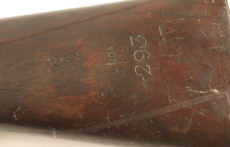 GOOD: Some minor replacement parts; metal smoothly rusted or lightly pitted in places, cleaned or re-blued; principal letters, numerals and design on metal legible; wood refinished, scratched bruised or minor cracks repaired; in good working order.