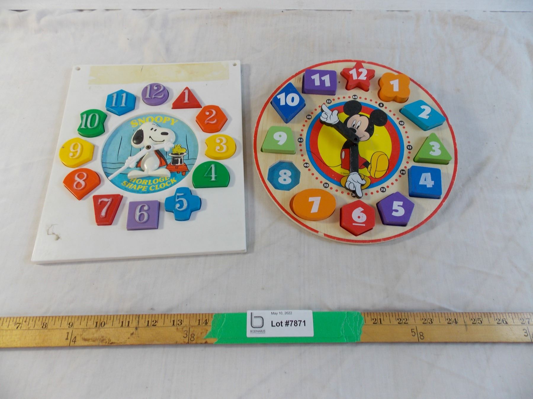 Snoopy clock + Mickey Mouse clock (missing the 8 block)