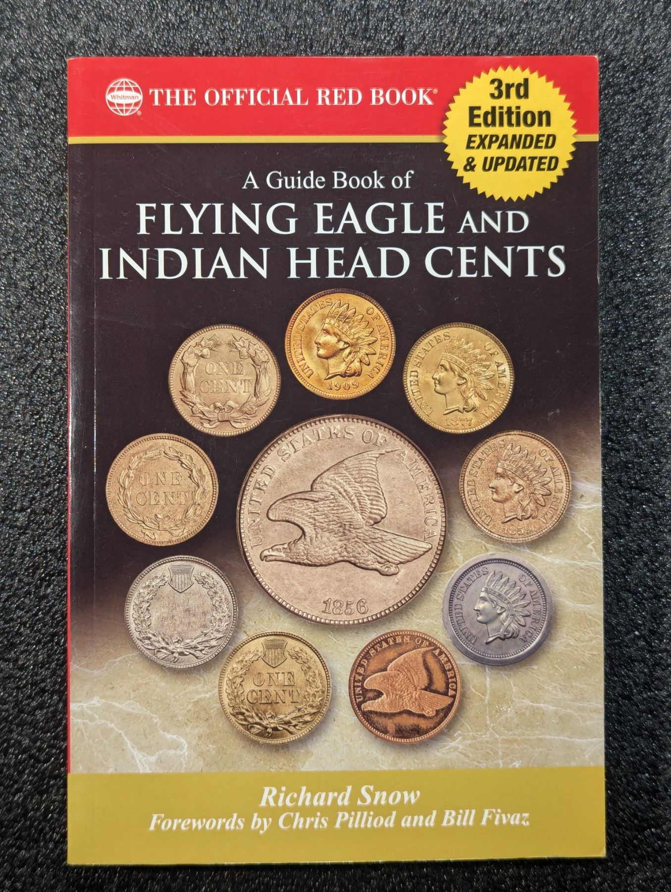 Snow, Richard. A GUIDE BOOK OF FLYING EAGLE AND INDIAN HEAD CENTS, 3RD EDITION. Whitman Publishing, LLC, Atlanta. 2016. 8vo. x, 294 pages. original pictorial card covers. Tables. Appendices. Bibliography. color photos throughout. English text. The David Baker Library. Fine. Award-winning author Richard Snow examines the Flying Eagle and Indian Head cents of 1856 to 1909, exploring mintages, challenges for the collector, and interesting varieties. His date-by-date research is enhanced by historical essays as well as an engaging overview of the series by the 'dean of American numismatics,' Q. David Bowers.