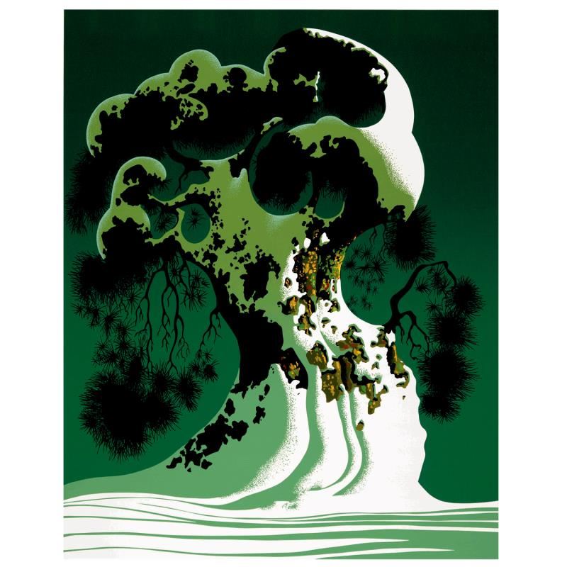 "Snow Covered Bonsai" is a limited edition serigraph on paper by Eyvind Earle (1916-2000). The piece is numbered, hand-signed by the artist, and accompanied by a certificate of authenticity. Measures approximately 20" x 16" (image).