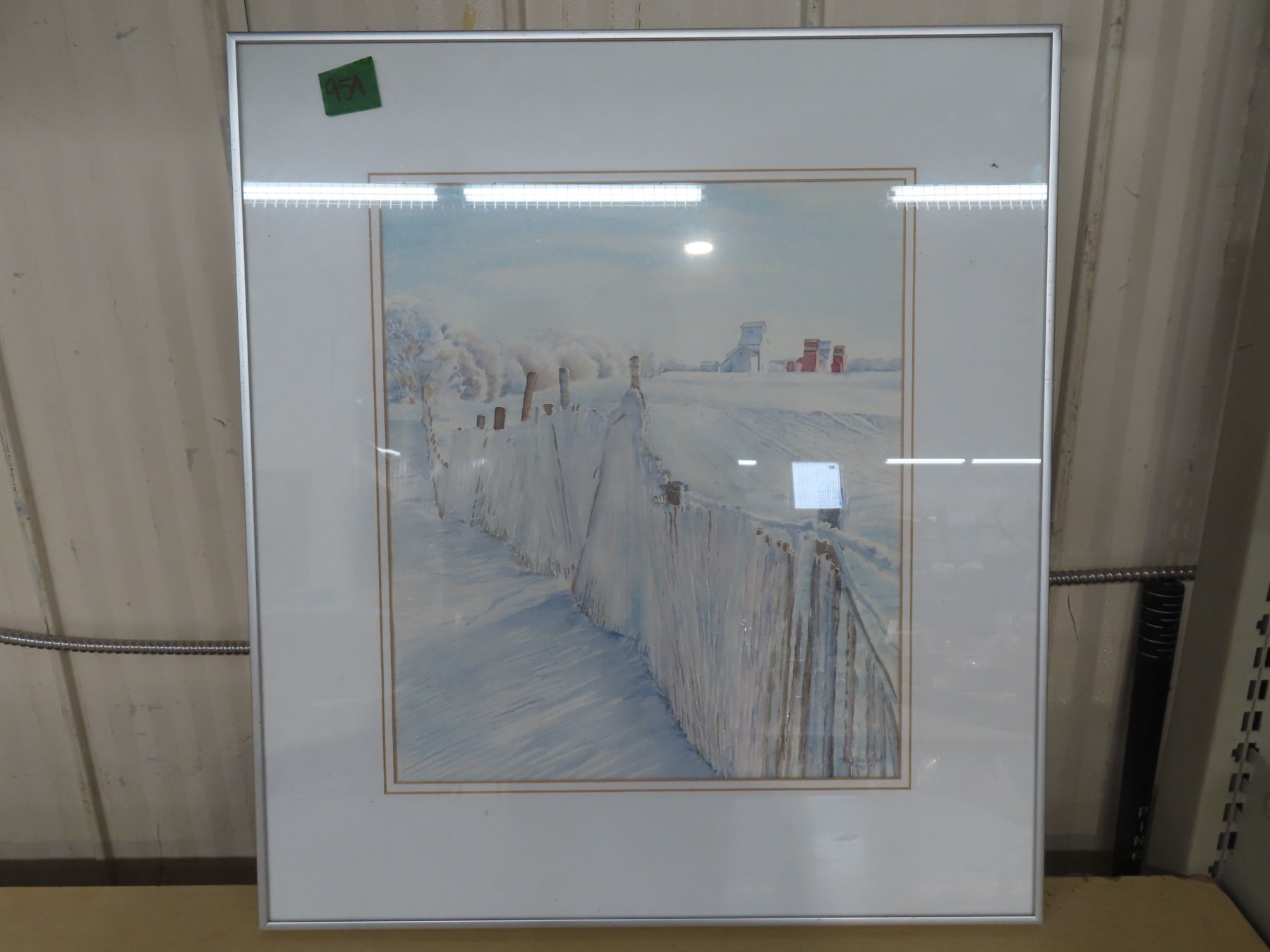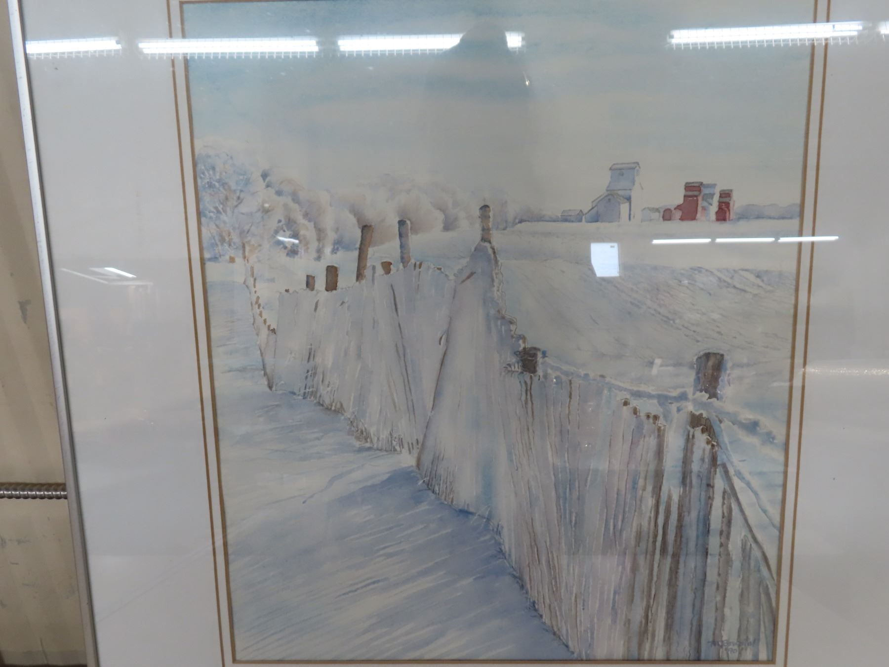"Snow Fence" Water Color Painting In Frame Sask Artist-24"x21.5"