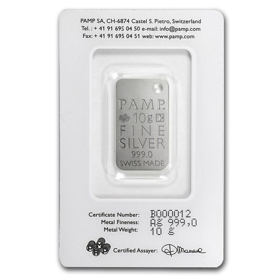 Product ID: 70298 Year: N/A Grade: N/A Grade Service: N/A Mint Mark: None Metal Content: 0.3215 troy oz Purity: .999 Manufacturer: Pamp Suisse Thickness: 0.83 mm Diameter: 23.3/14 mm