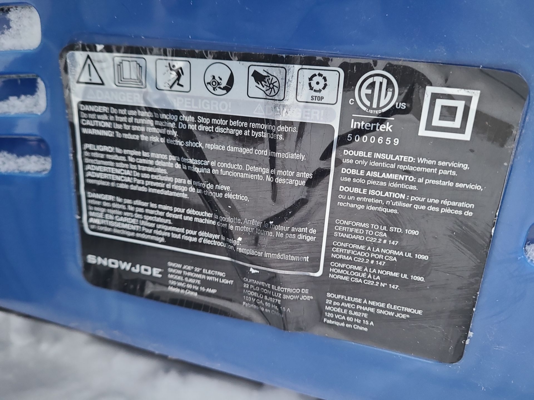 Snow Joe Model Number SJ627E Electric Snow Thrower