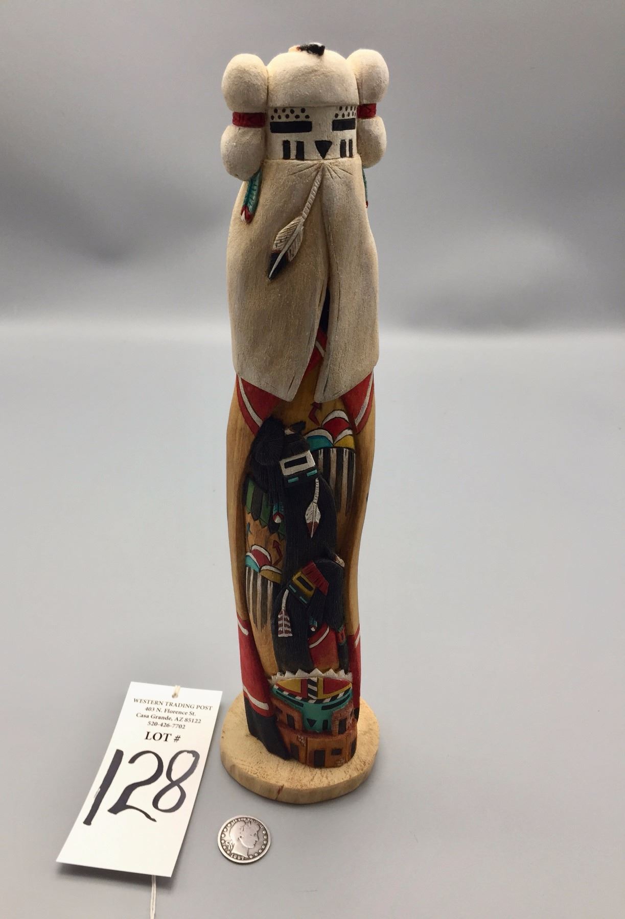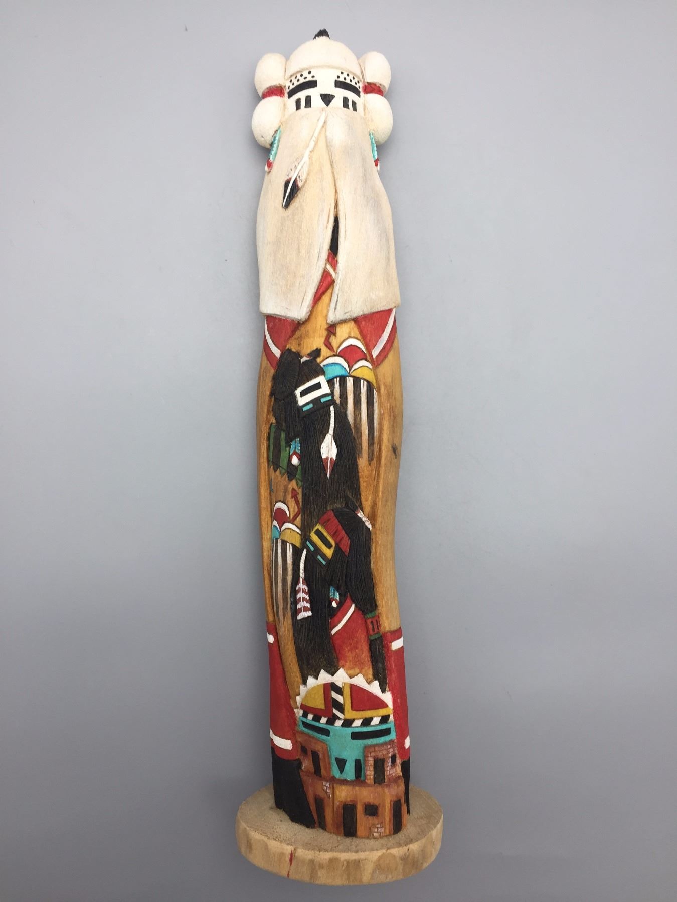 Maker: Signed “L. Maho”. Approx. Age: Contemporary. Size: 12 3/4” tall x 3” wide. Additional Info: Very nice “Snow Maiden” Hopi Kachina. Condition: Good. Please look closely at the pictures - they are an important part of our description. Shipping: There will be a $7 handling / packaging fee for shipping this lot. The actual cost of postage will be added on top of that.