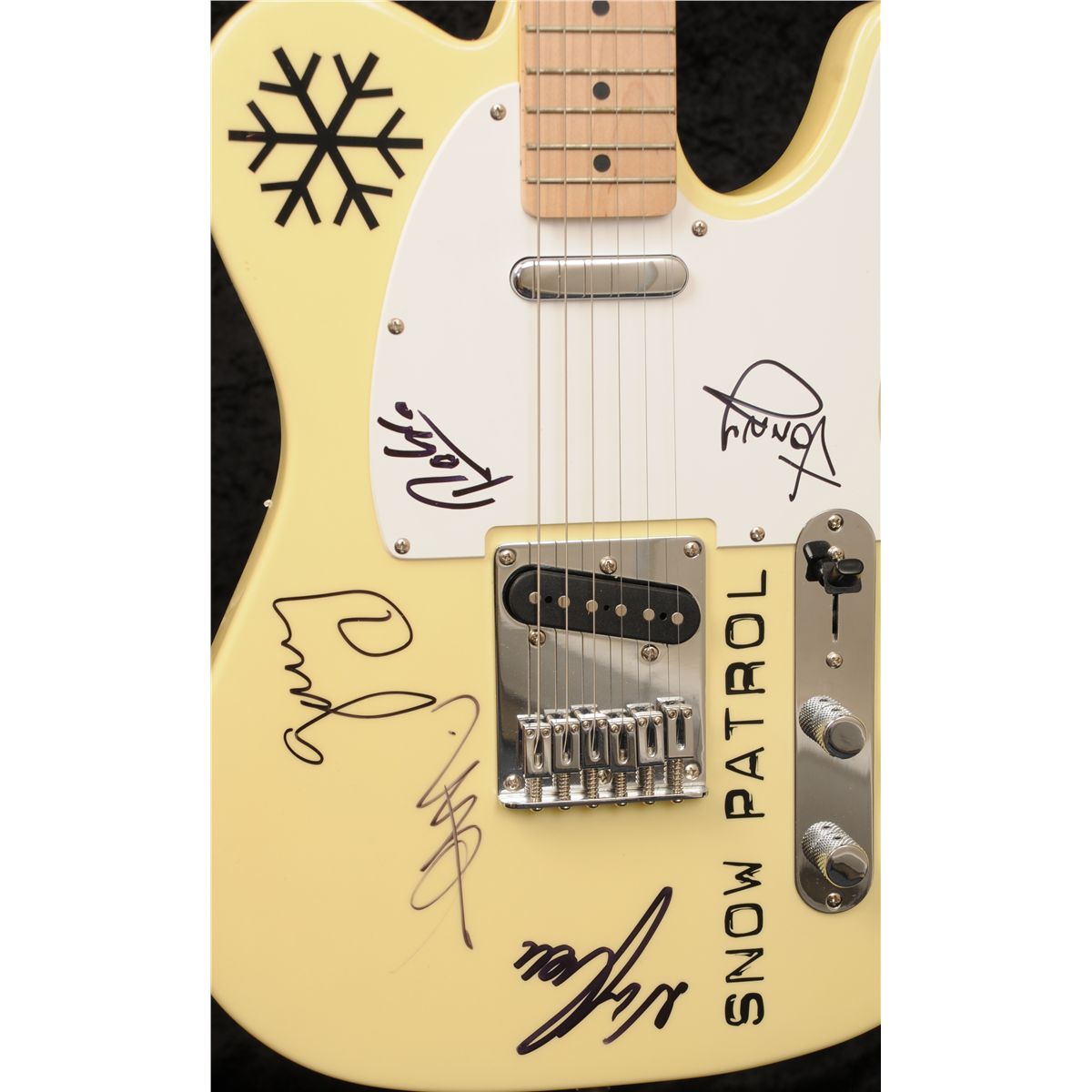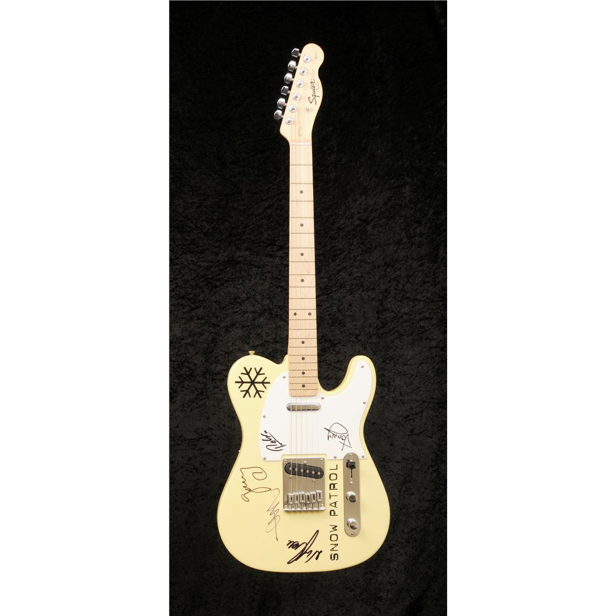 Snow Patrol: a guitar autographed by Gary Lightbody, Nathan Connolly, Jonny Quinn, Johnny McDaid and Paul Wilson, a Fender Squire Telecaster guitar, with Vintage Blonde finish and applied 'Snow Patrol' and snowflake, signed on the scratchplate and body by all five band members in black marker