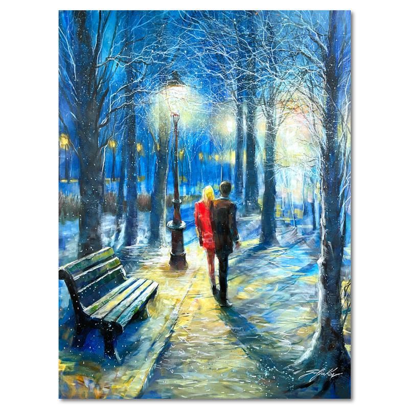"Snow Walk" is an original oil painting on stretched canvas by Vadik Suljakov, hand signed by the artist. Includes Letter of Authenticity. Measures approx. 30" x 40" (image).