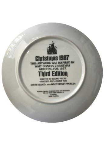 A Disney collectible Snow White plate from Christmas 1987. This artwork was inspired by Walt Disney’s Christmas greeting in 1937. Third edition. Limited to 10,000 pieces. Designed exclusively for Disneyland and Walt Disney World. In original box.