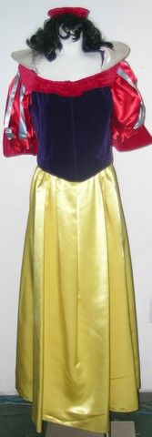 From New York costume designer Frankie Stein comes a custom made two-piece Snow White costume. Includes a satin yellow skirt, a blue velvet boned bodice with red puffy sleeves, a dark wig, capelet, and colar. Ms. Stein's work has been featured on stage, television, film & print, and she successfully owns and operates "Frankie Steinz" costume shop in New York. As a freelance costume designer, she later moved her business to New York City where her many clients include ABC, Sony, Disney and HBO, and celebrities Robert De Niro, Billy Joel and Dolly Parton, to name a few. Her work has been featured in The New York Times, Time Out magazine and People Online, and has been seen on The David Letterman Show, The View, Saturday Night Live, The Rosie O'Donnell Show, and Everybody Loves Raymond, and she is credited on the major Academy Award winning film 'Eternal Sunshine of the Spotless Mind.'