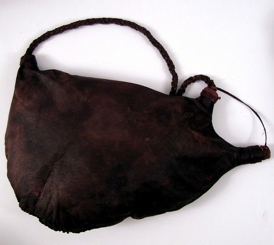 It was always gratifying as kids to know that the Huntsman who was ordered to cut out the heart of Snow White by the evil Queen couldn’t' do it. The hit adventure fantasy "Snow White and the Huntsman" (2012) takes it a step further as he becomes Snow Whites protector and more. This is a screen used leather saddleback water bag with braided shoulder strap. (Approx. 20" long).