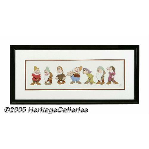 <B>Snow White and the Seven Dwarfs ""Time to Wash Up"" Limited Edition Sericel (The Walt Disney Company, 1996).</B></I> This sericel depicts characters from Walt Disney's first feature-length animated film ""Snow White and the Seven Dwarfs"". Snow White makes the seven dwarfs line up for a pre-supper ""dirty hands inspection"" which, sadly, they fail. ""Time to Wash Up"" recreates Sequence 5B, Scenes 13B and 16 from Disney's classic animated feature. Walt Disney artists, working from the original animation drawings, translated these images to a hand-inked and hand-painted cel, which was used in the production of this sericel. Limited to an edition of 5,000, this sericel has an image area measuring 26"" x 7.5"". The condition is Excellent, and this lot also includes a certificate of authenticity. <BR><BR><B>Important notice:</B> Heritage usually auctions material at the rate of 200-250 lots per hour. On some occasions eBay Live bid software or the Internet may not be able to keep up with the pace of the auction. We recommend placing a realistic absentee bid now as insurance to avoid disappointment. Occasionally the auctioneer may eliminate or reject an eBay Live bid, and the auctioneer may also reopen a lot after the close of the eBay live bidding (usually because we missed an audience bid), and may reject your bid even if it shows you as the winning bidder. By bidding via eBay Live, you agree that Heritage may award the lot to another bidder at its sole discretion under the circumstances described above or any other reasonable circumstances. Since eBay bids are not shown to us until we open the lot on the floor, we treat those bids just like floor bids. In most cases the floor responds before the eBay bid is presented to us, due to Internet lag time, so for consistency we have made it a policy that floor bids are always considered first over tie eBay live bids. Also please note that all Heritage lots purchased through eBay Live carry a 20% Buyer's Premium. Please ma
