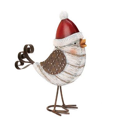 Snowbird Red Hat Winter Decor **|**|** This snowbird has decorative wings, a curled tail, and a bright beak to add plenty of seasonal charm to your room. His body is finished like whitewashed boards topped with a bright red winter hat to keep him cozy. Item Weight: 0.4 lb. 7 x 2-1/2" x 7-1/2" high. Polyresin and metal. ."