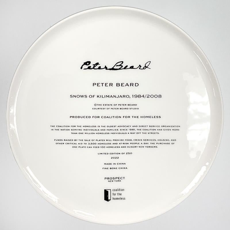"Snows of Kilimanjaro" is a limited edition plate by Peter Beard (1938-2020). This plate is custom framed and floated on linen. Includes Letter of Authenticity. Measures approx. 15.5" x 15.5" (frame), 11" (plate diameter).