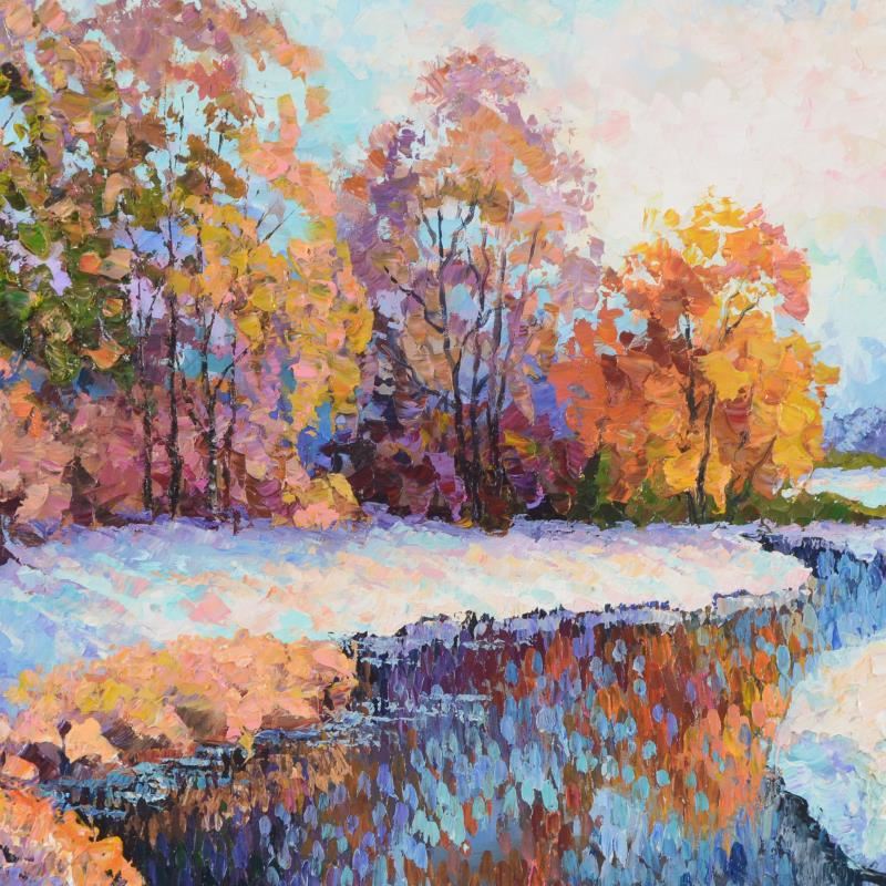 "Snowy Banks" is an original oil painting on stretched canvas by Alexander Antanenka, hand signed by the artist. Includes Certificate of Authenticity. Measures approx. 30" x 24" (image).