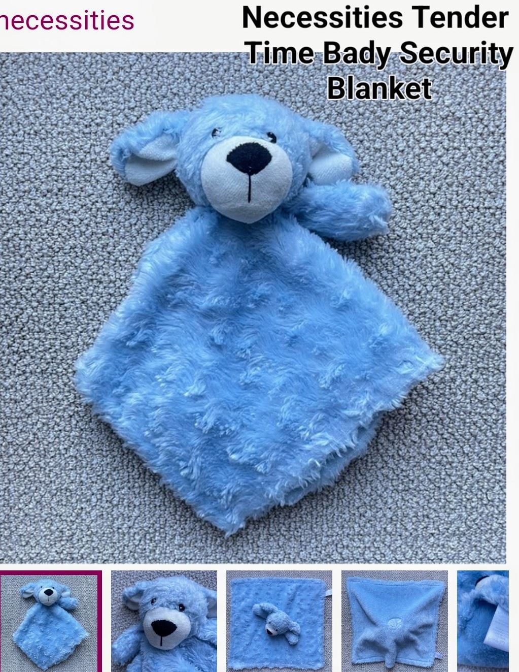 Plush blue bear security blanket, ultra-soft for baby comfort, new.