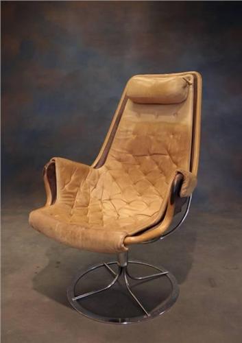 Snurrfåtölj skinnklädsel på kromat rotostativ "Jetson" Bruno Mathsson H 98 fläckar