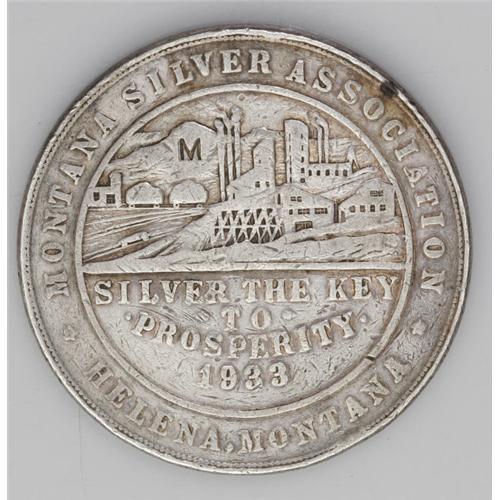 <B>So-Called Dollar Group.</B></I> Includes 1933 Montana dollar HK-820, Fine15, with toning, a very scarce piece with approximately 20-50 pieces known; HK-452 Sesquicentennial in copper; and a 1926 HK-UL Washington Sesquicentennial piece. A great lot. Viewing is recommended.