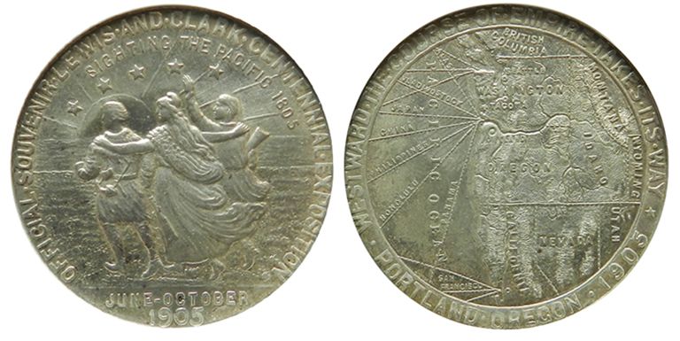 Lewis and Clark Centennial Exposition, Official Medal, 1905. HK-325. Silver. NGC MS65. Pop 2.