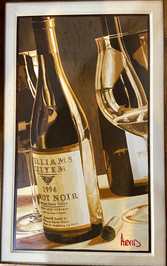 Thomas Arvid created this 22x13" image ode to Pinot Noir, a serigraph on panel board, in an edition of 400. Liner & filet good but molding is not.